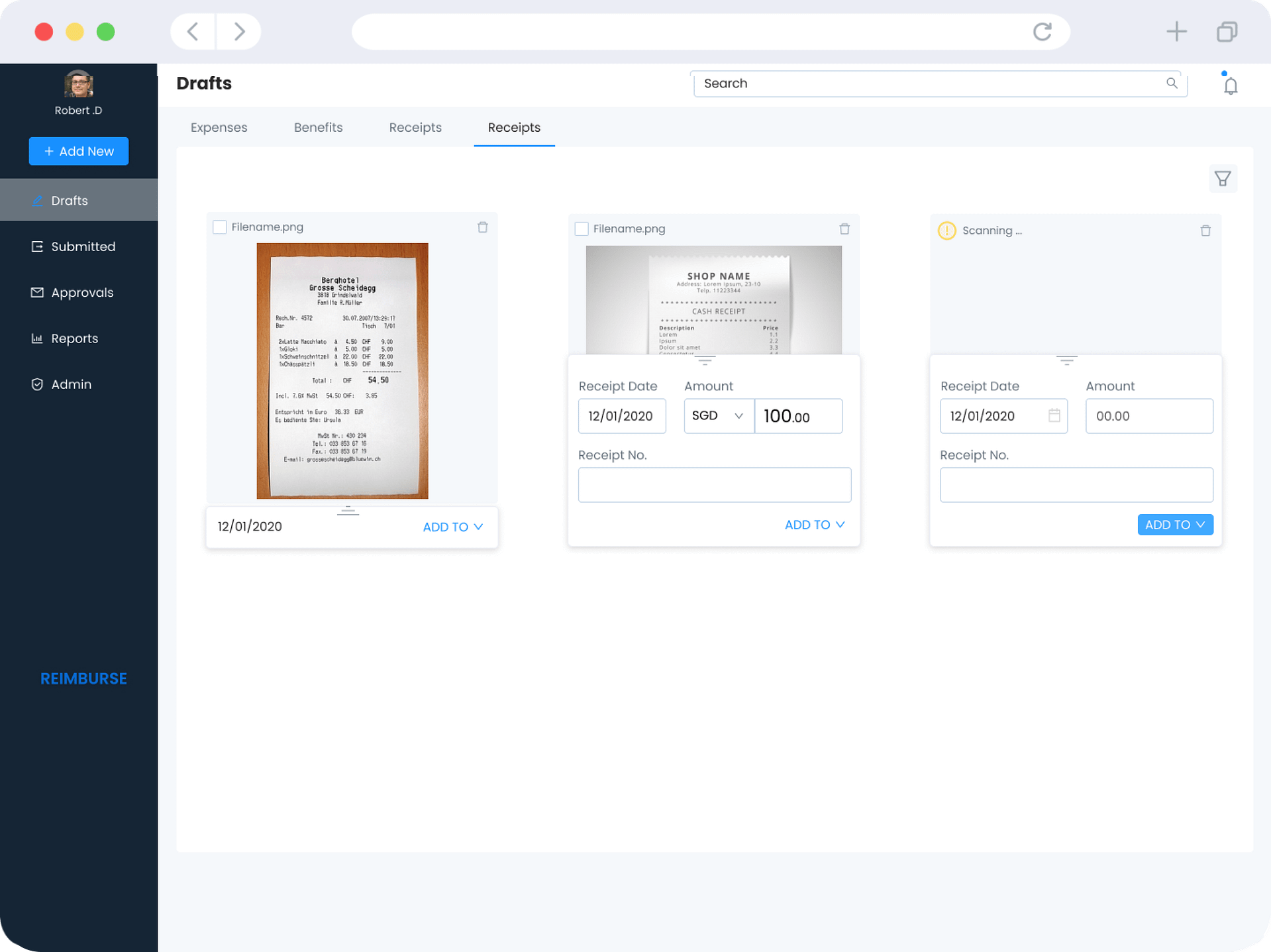 Simply scan and save receipts in receipt library and claim at ease